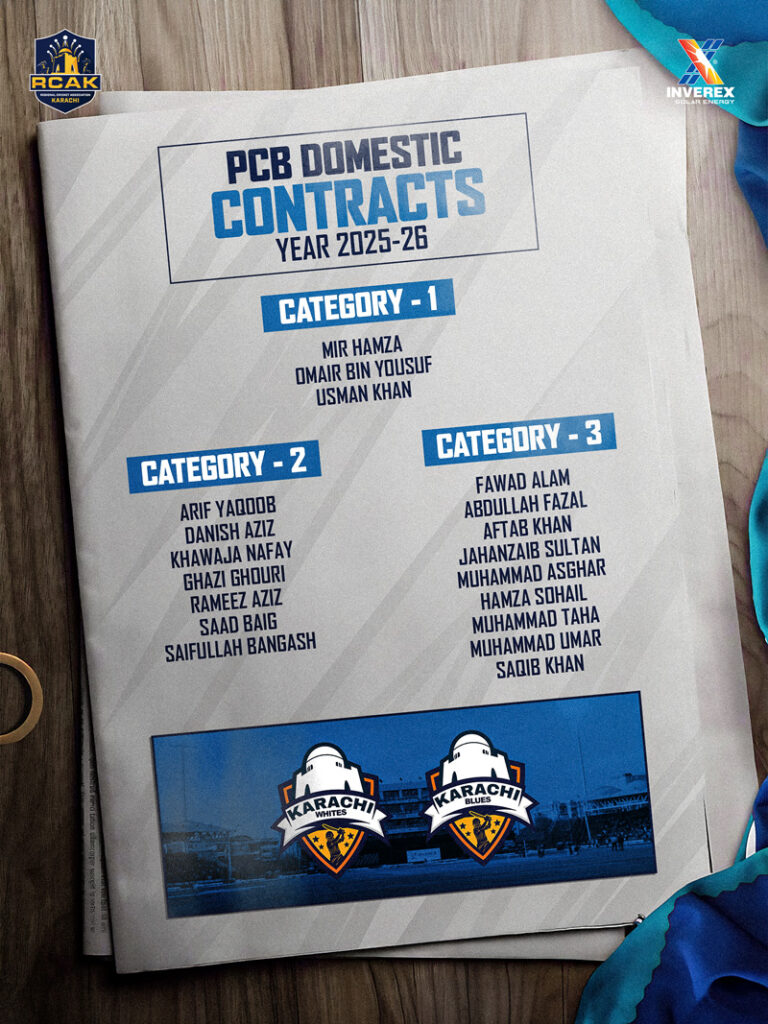 Karachi: The Pakistan Cricket Board has announced its latest set of domestic central contracts, with a significant representation from Karachi across all three categories.